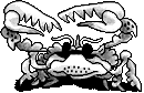Maldicion is a crab, covered in bulbs, with pitch-black eyes, an underside covered in small holes, and seemingly three antennae atop its head.